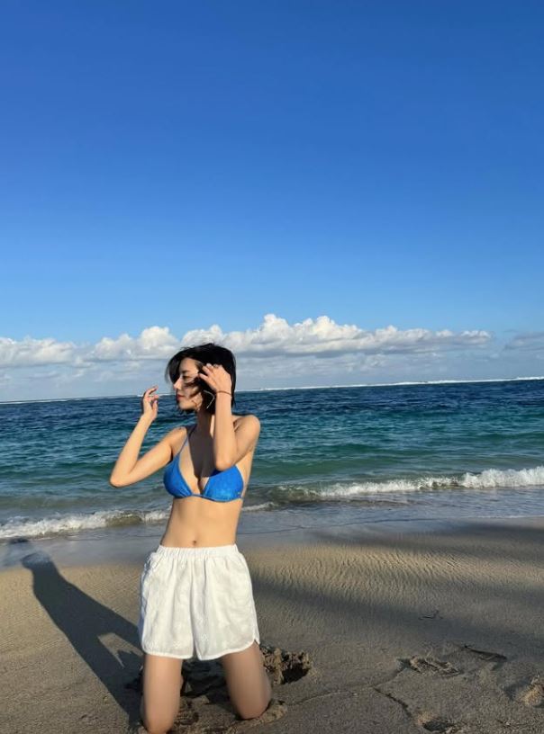 권은비 파란 비키니에 홀터넥 입은거와 안입은 차이