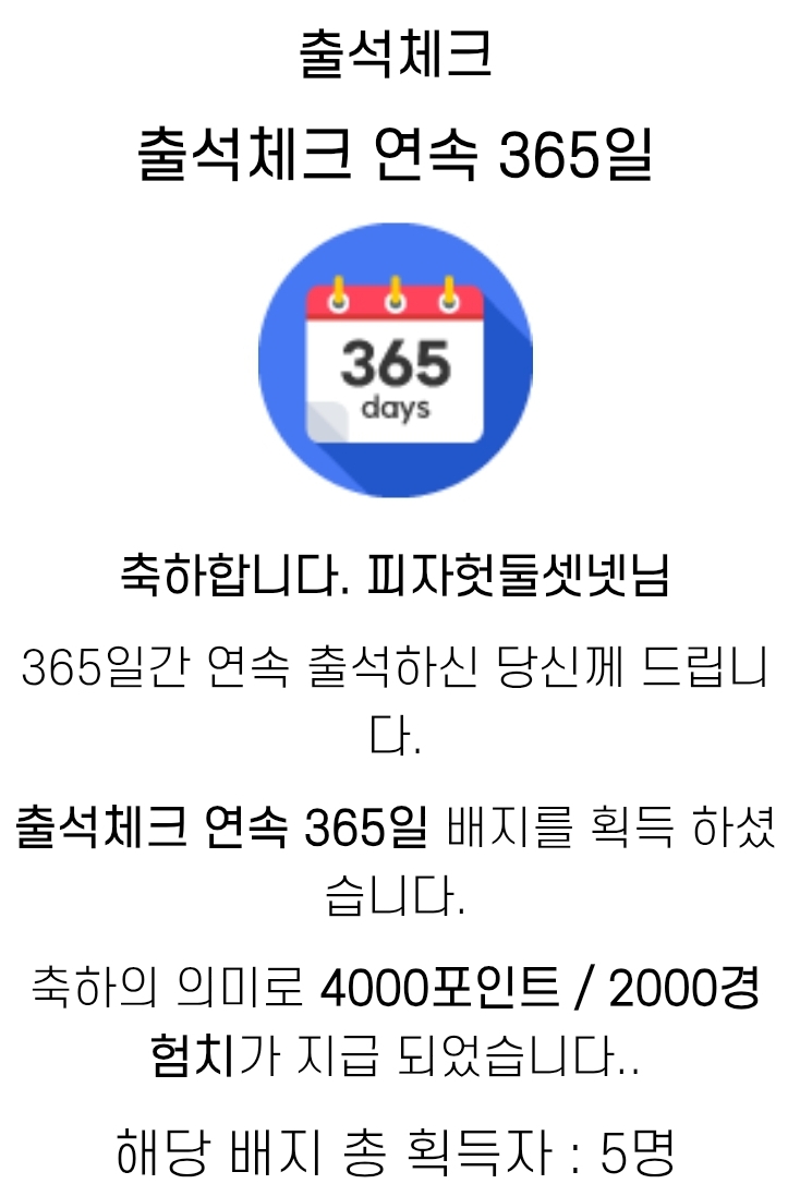 1년 개근 배지 획득