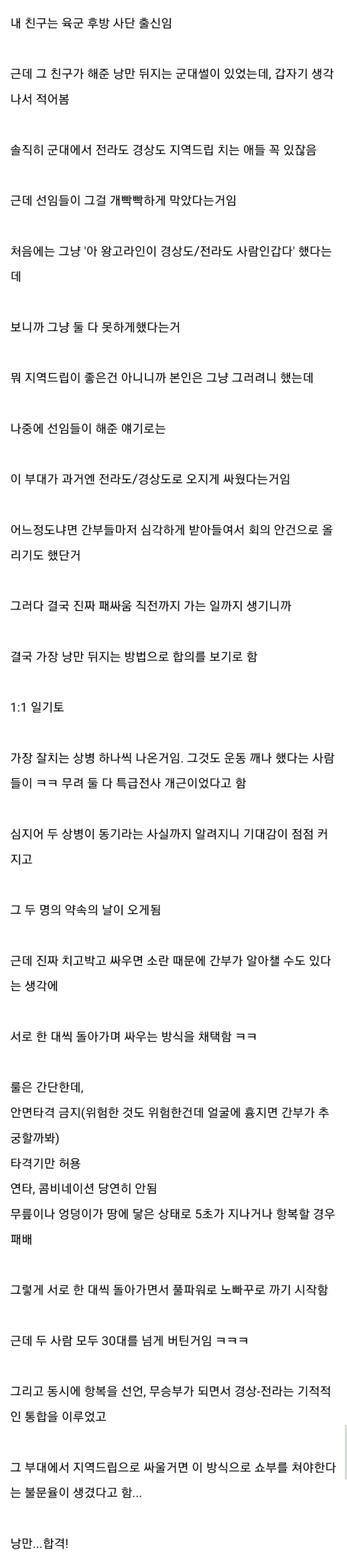 군대에서 지역갈등 해결한 방법