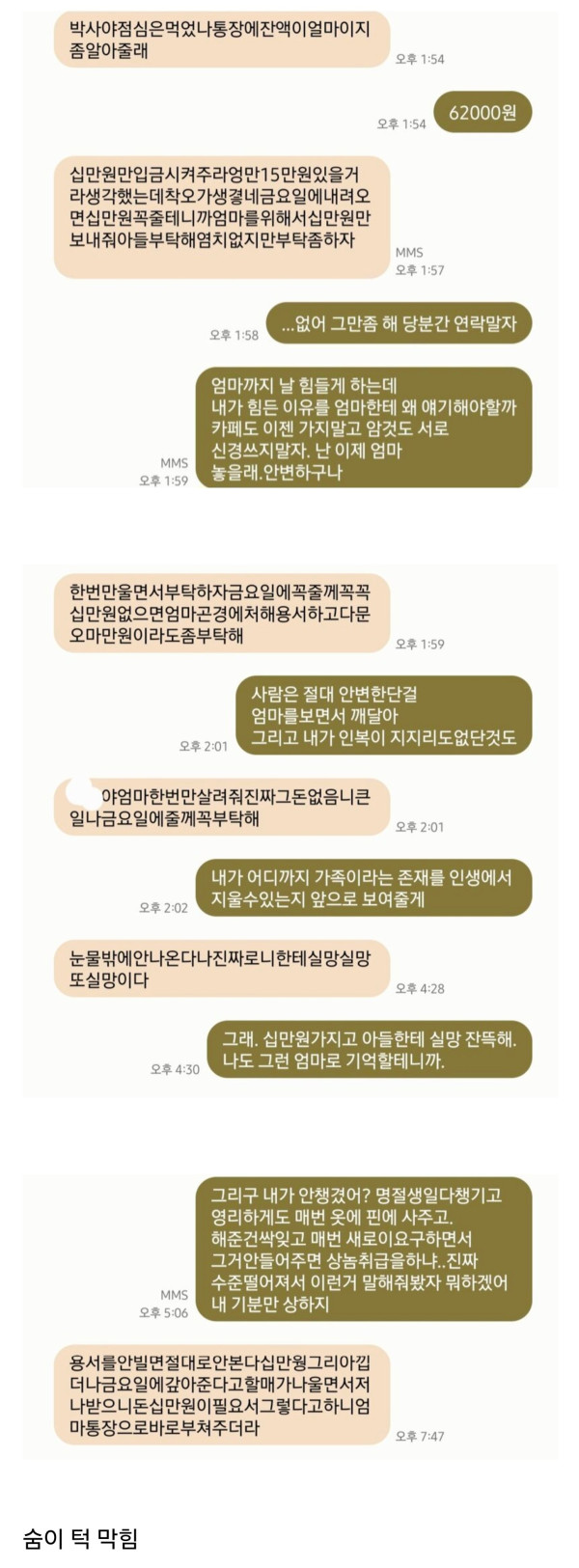 가족이랑 연 끊고 싶다며 올라온 문자 내용...jpg