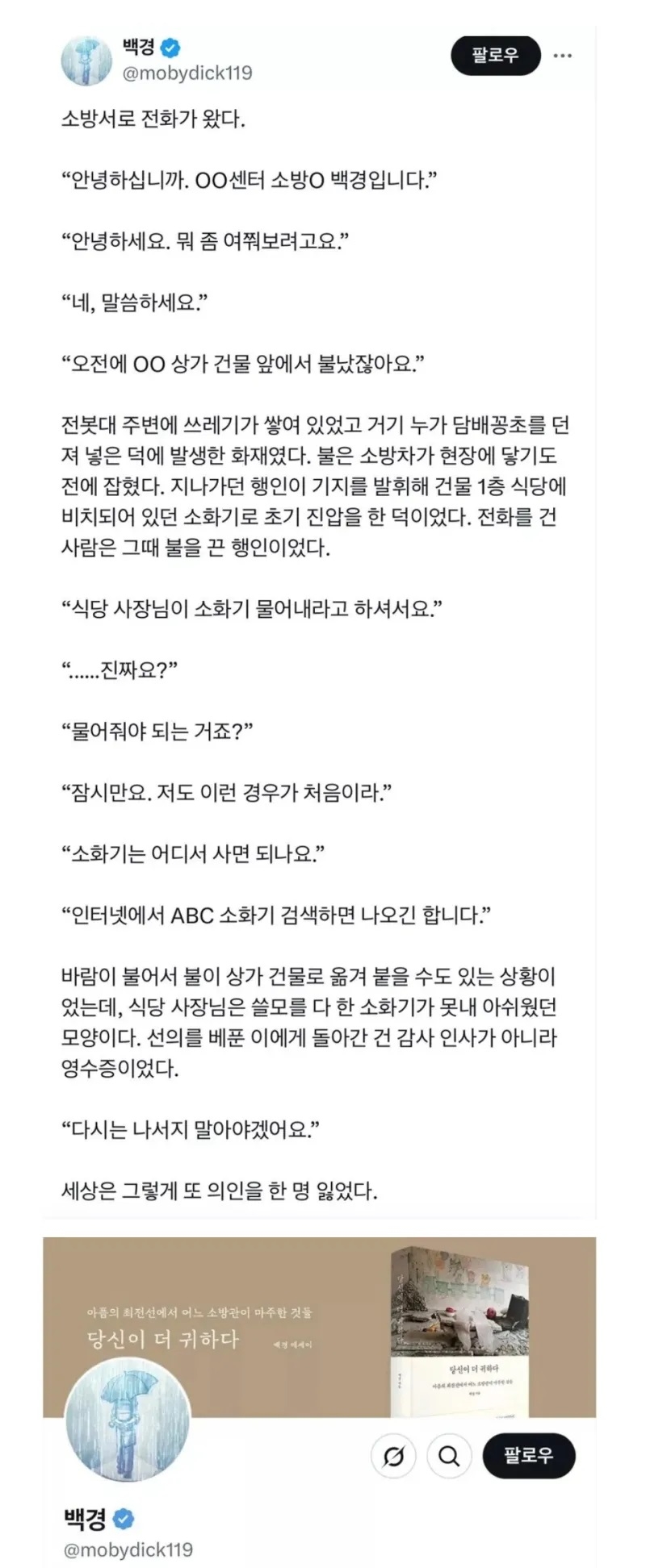 세상은 그렇게 또 한명의 의인을 잃었다