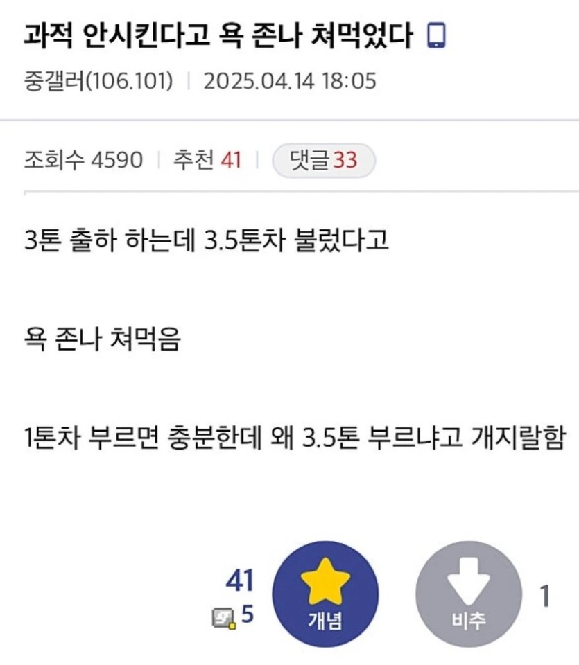3톤 출하하는데 3.5톤 차 불렀다고 혼남