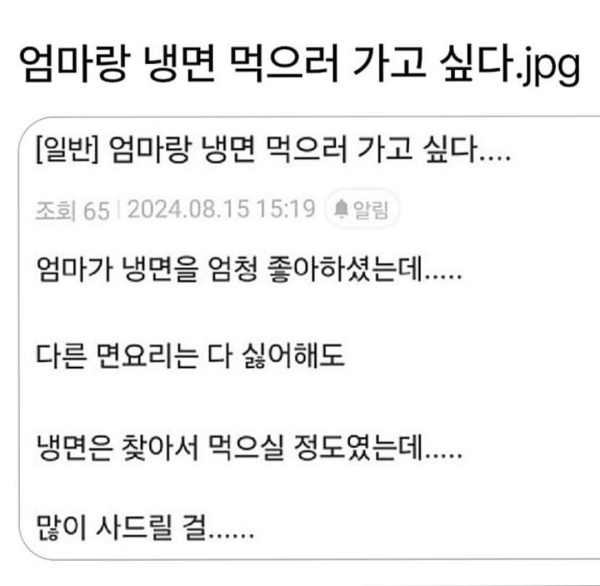 엄마랑 냉면 먹으러 가고 싶다