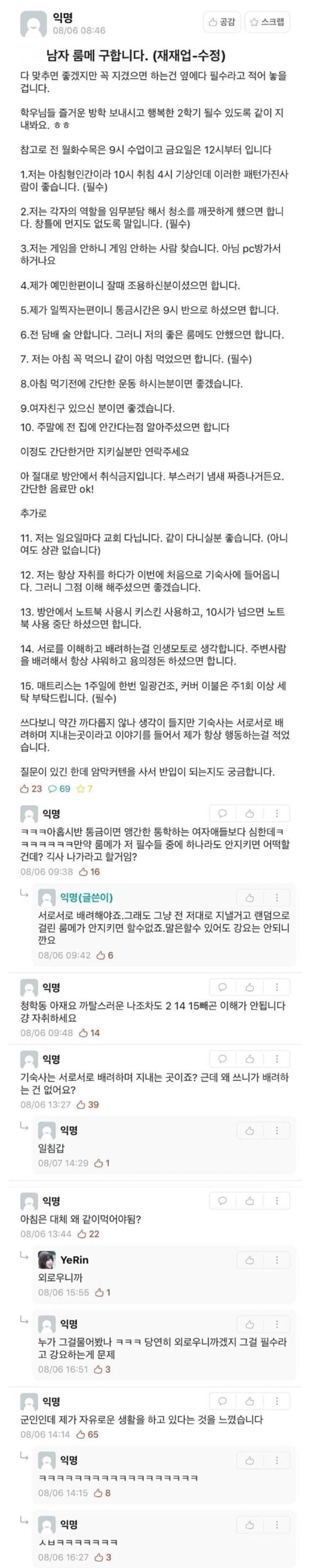 숨막히는 룸메이트 조건..jpg