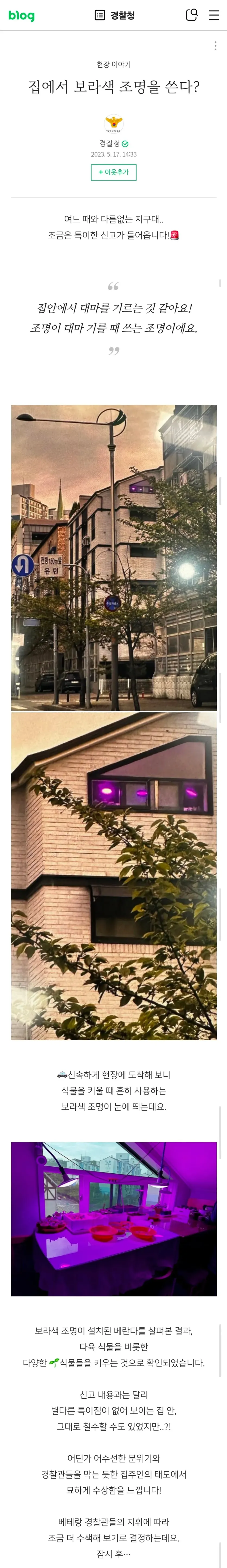 [스압] 집에서 보라색 조명 쓴다는 제보에 출동한 경찰