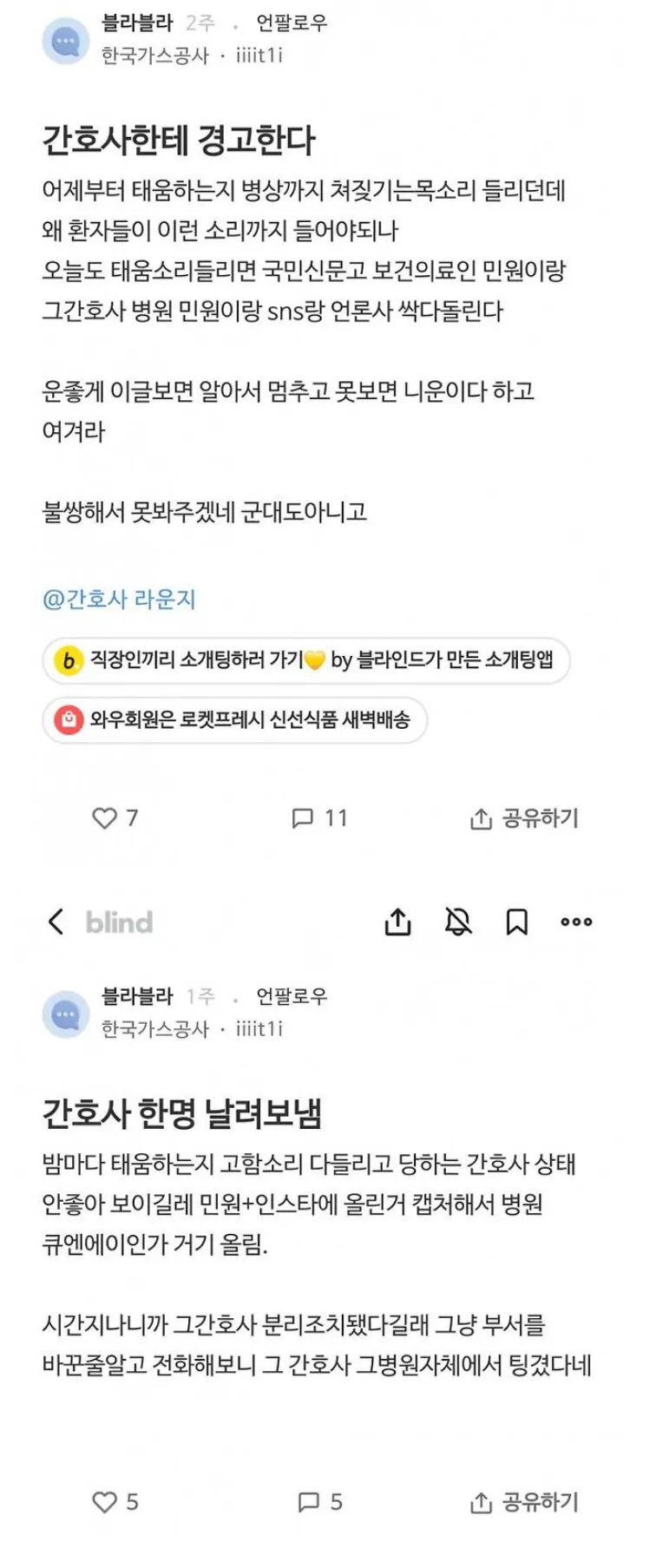 병원에서 태움하는 간호사 퇴사시킨 환자