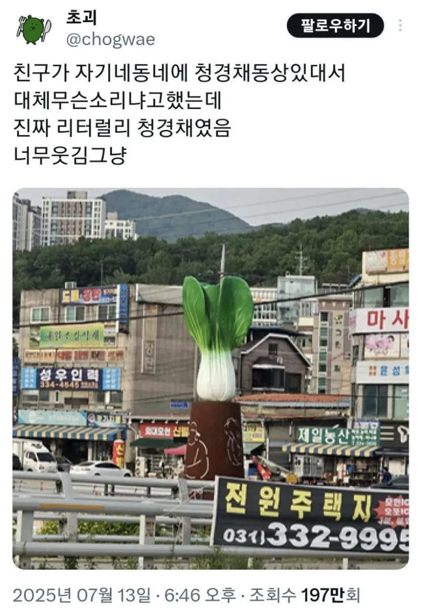 친구가 자기 동네에 청경채 동상 있대서 무슨 소리냐고 했는데