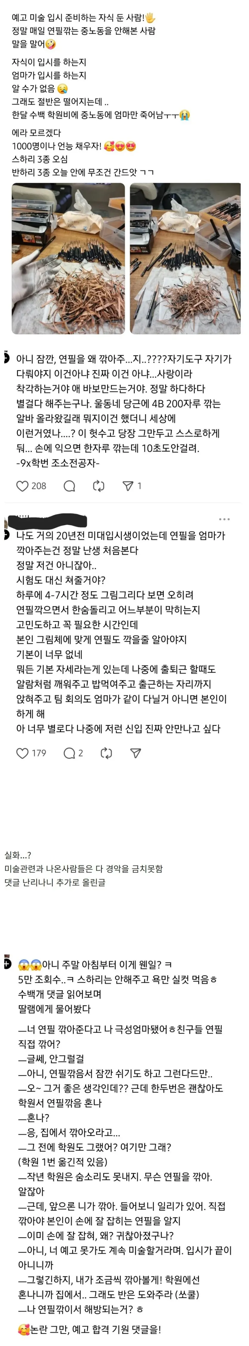 요즘 미대입시 준비할땐 엄마가 연필 깍아줌