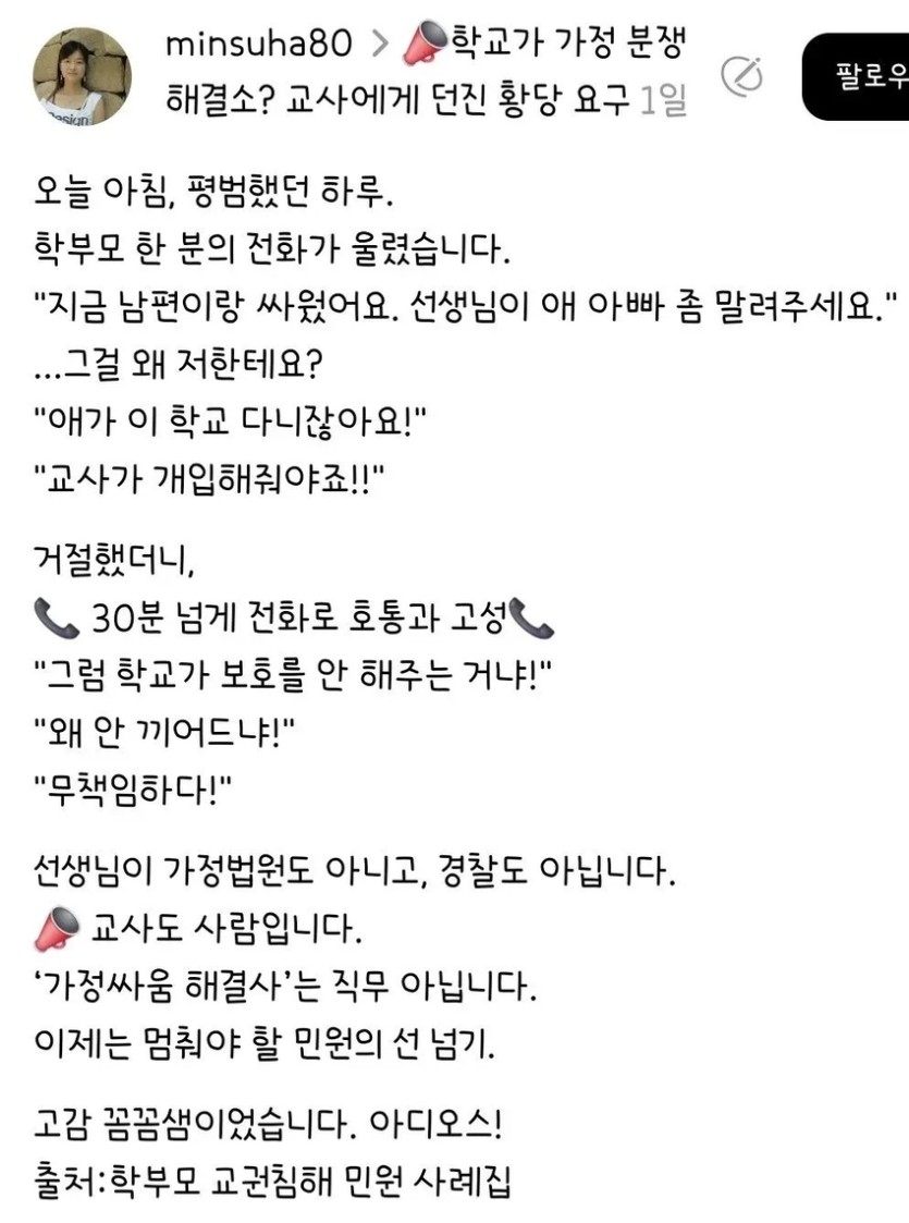 지금 남편이랑 싸웠어요. 선생님이 애 아빠좀 말려주세요