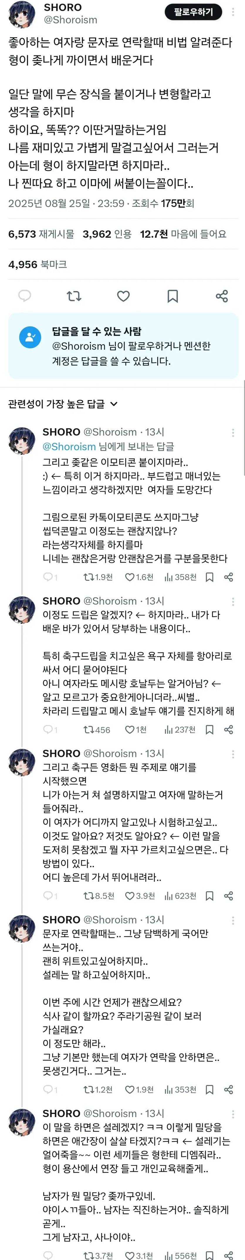 좋아하는 여자랑 문자로 연락할때 비법 알려준다.twt