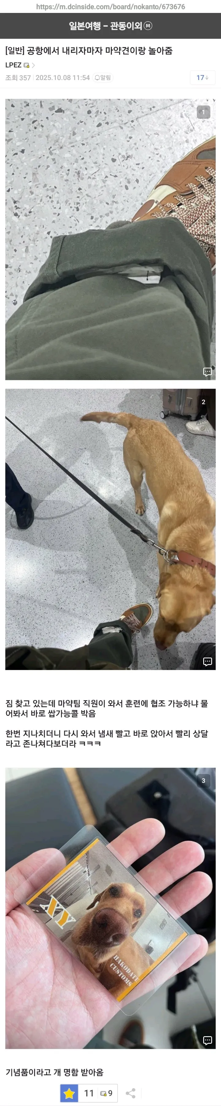 공항에서 마약견 훈련에 협조하면 받는 굿즈..jpg